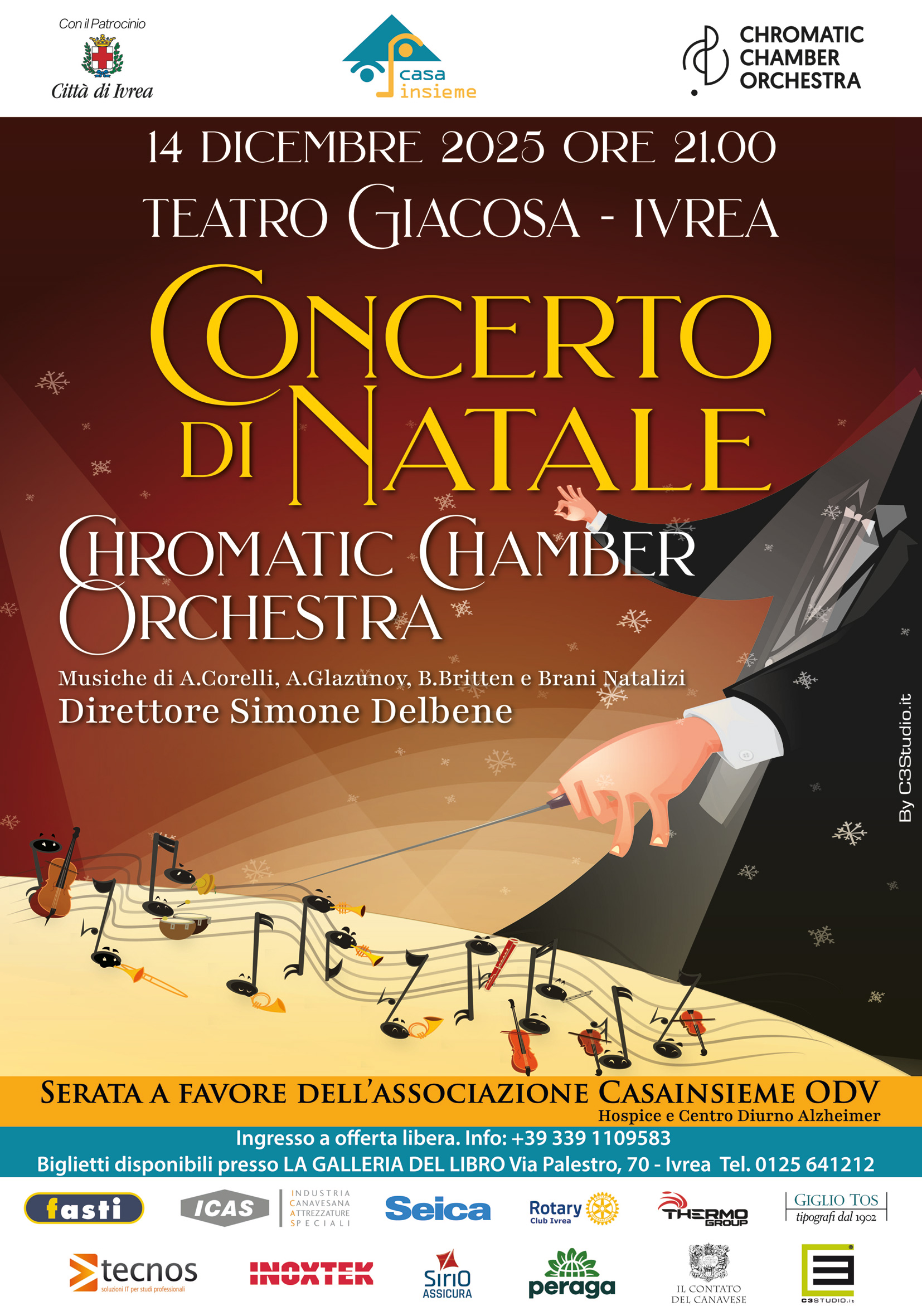 Concerto di Natale il 14 dicembre alle 21.00 al Teatro Giacosa di Ivrea, per un evento speciale a favore dell’Associazione Casainsieme ODV.