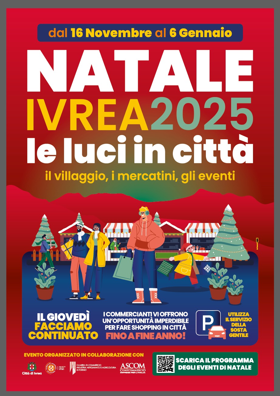 Dal 16 novembre 2025 al 6 gennaio 2026, Ivrea si prepara ad accogliere cittadini e turisti con un ricco calendario di eventi per ricreare una magica atmosfera di festa.