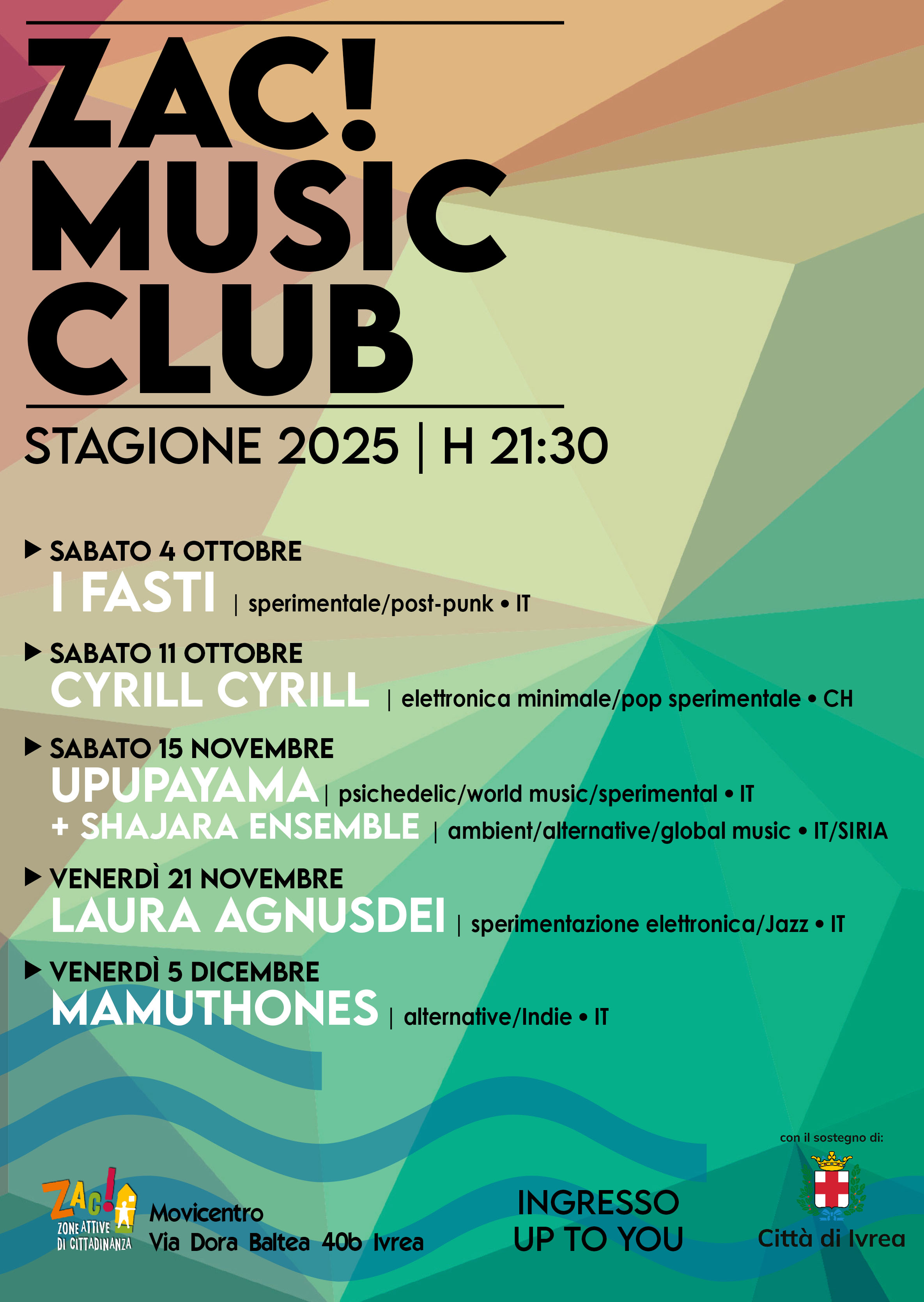 "Cyrill Cyrill" Live - Duo svizzero che mescola elettronica minimale, pop sperimentale e influenze kraut-rock in un cocktail sonoro ipnotico e raffinato. Le loro composizioni bilanciano precisione matematica e spontaneità emotiva, dando vita a paesaggi musicali unici. Un progetto che ridefinisce i confini tra tradizione e innovazione.