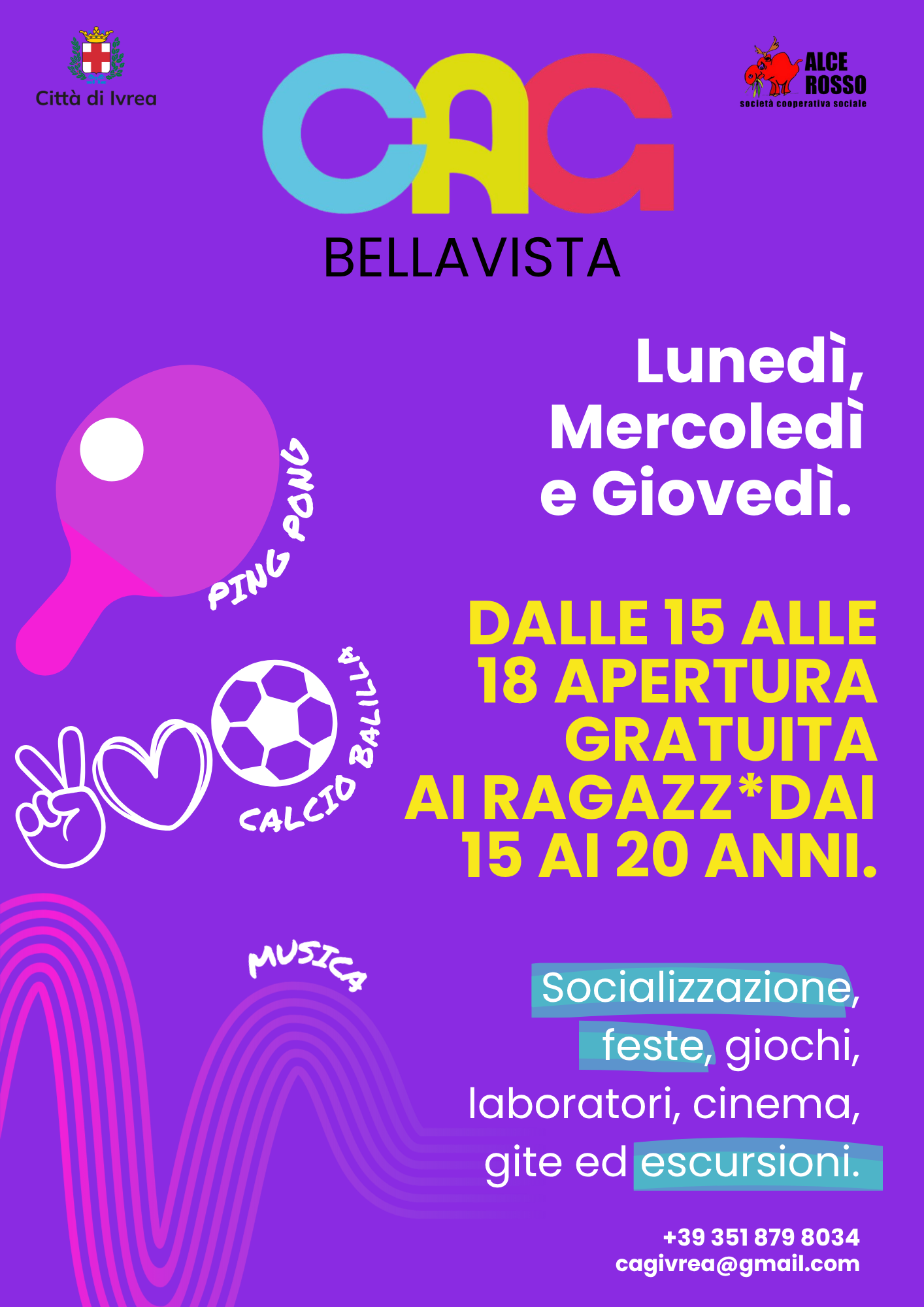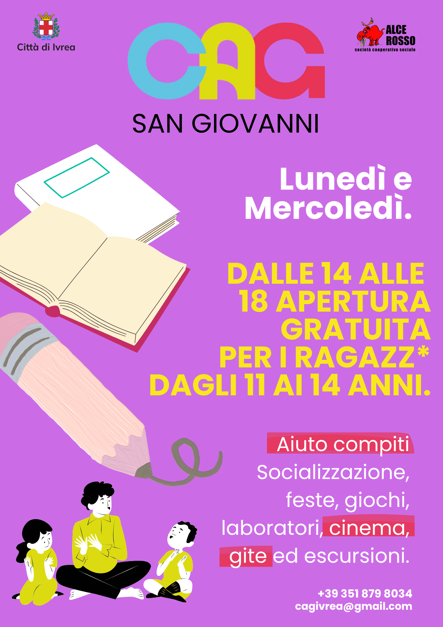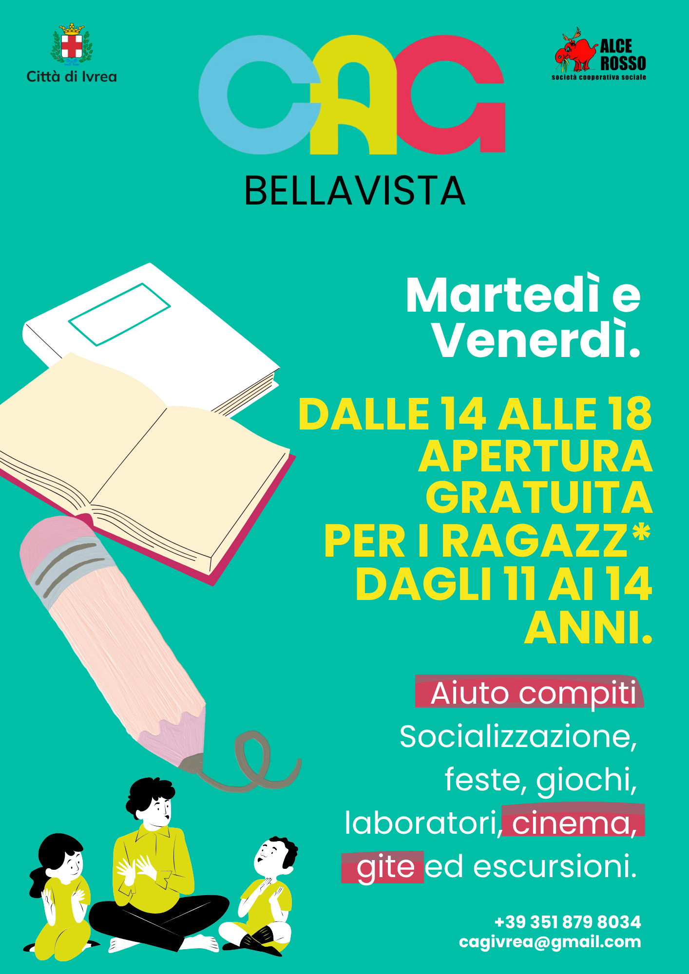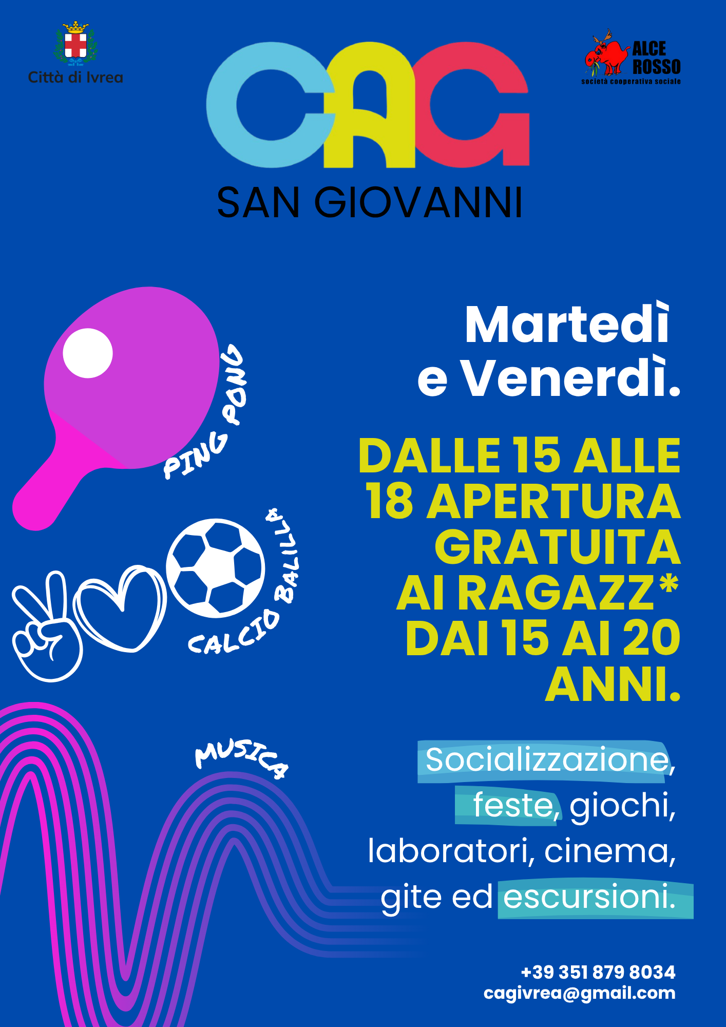 Per informazioni su come accedere ai servizi dei CAG scrivi a infogiovani@comune.ivrea.to.it o chiamare lo 0125 410321 o 410326