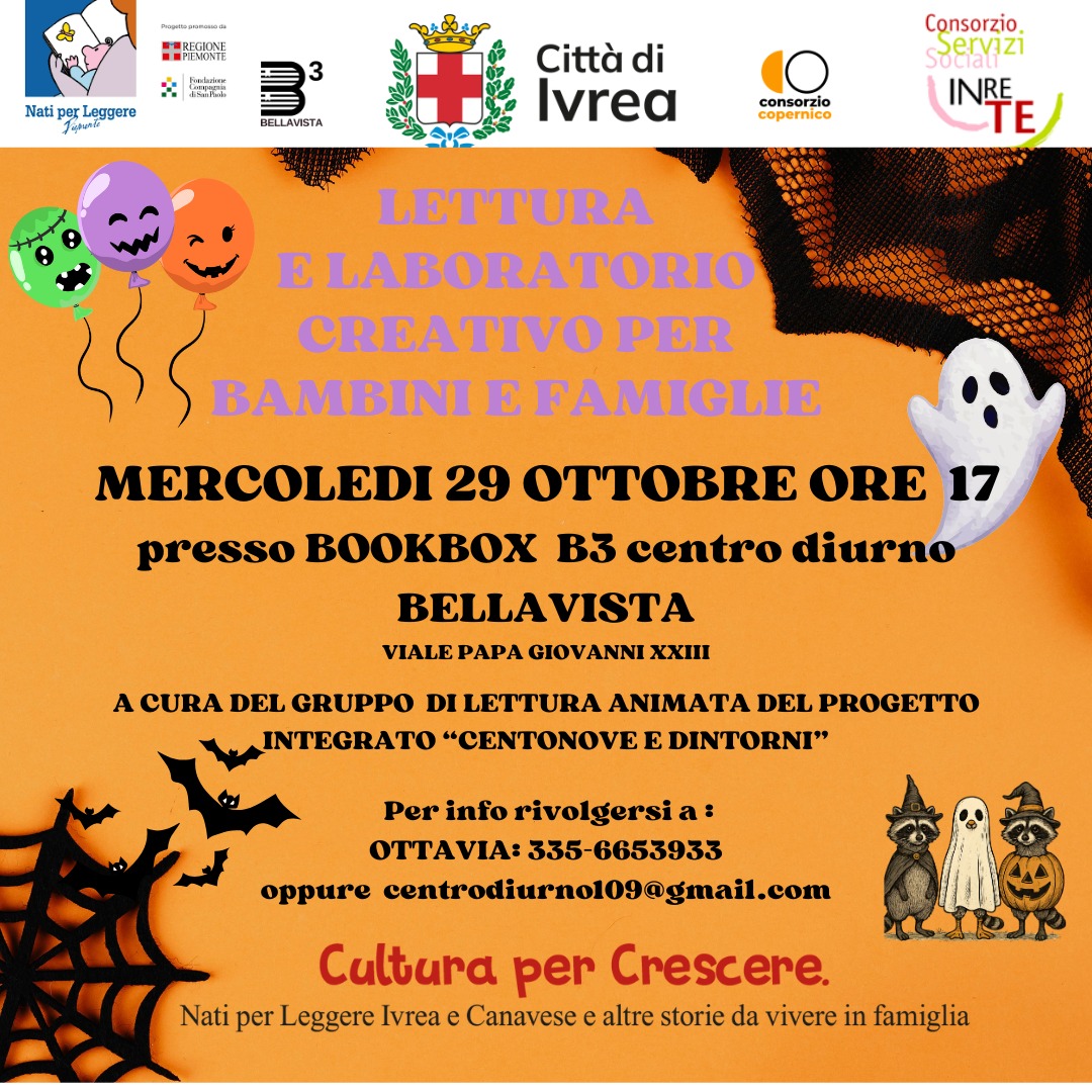 Lettura e laboratorio creativo per bambini e famiglie Mercoledì 29 ottobre ore 17:00 presso Bookbox B3 centro diurno Bellavista, in Viale Papa Giovanni XXIII a cura del gruppo di lettura animata del progetto integrato "Centonove e dintorni"