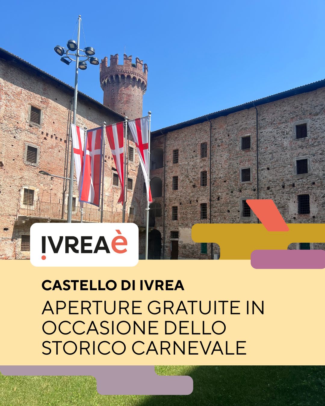 In occasione dello Storico Carnevale di Ivrea, la città celebra uno dei suoi simboli più iconici. Il Castello di Ivrea annuncia un calendario di aperture straordinarie con accesso libero e gratuito senza prenotazione per permettere a cittadini e turisti di immergersi nella storia eporediese durante i giorni della manifestazione.