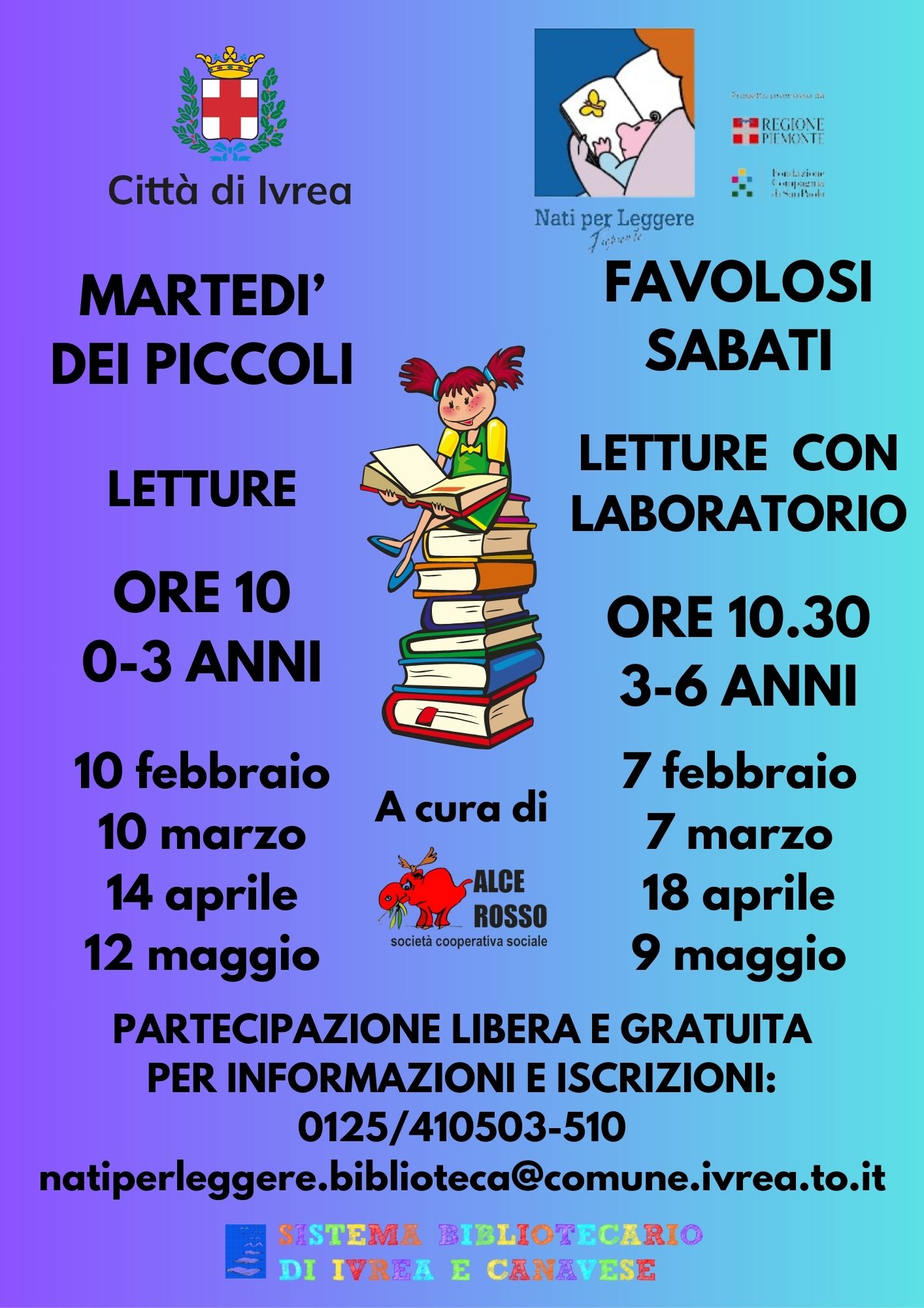 I prossimi appuntamenti di lettura per i bambini 0/6 anni in biblioteca, all'interno del progetto 'Nati per leggere -cultura per crescere, una storia alla volta'